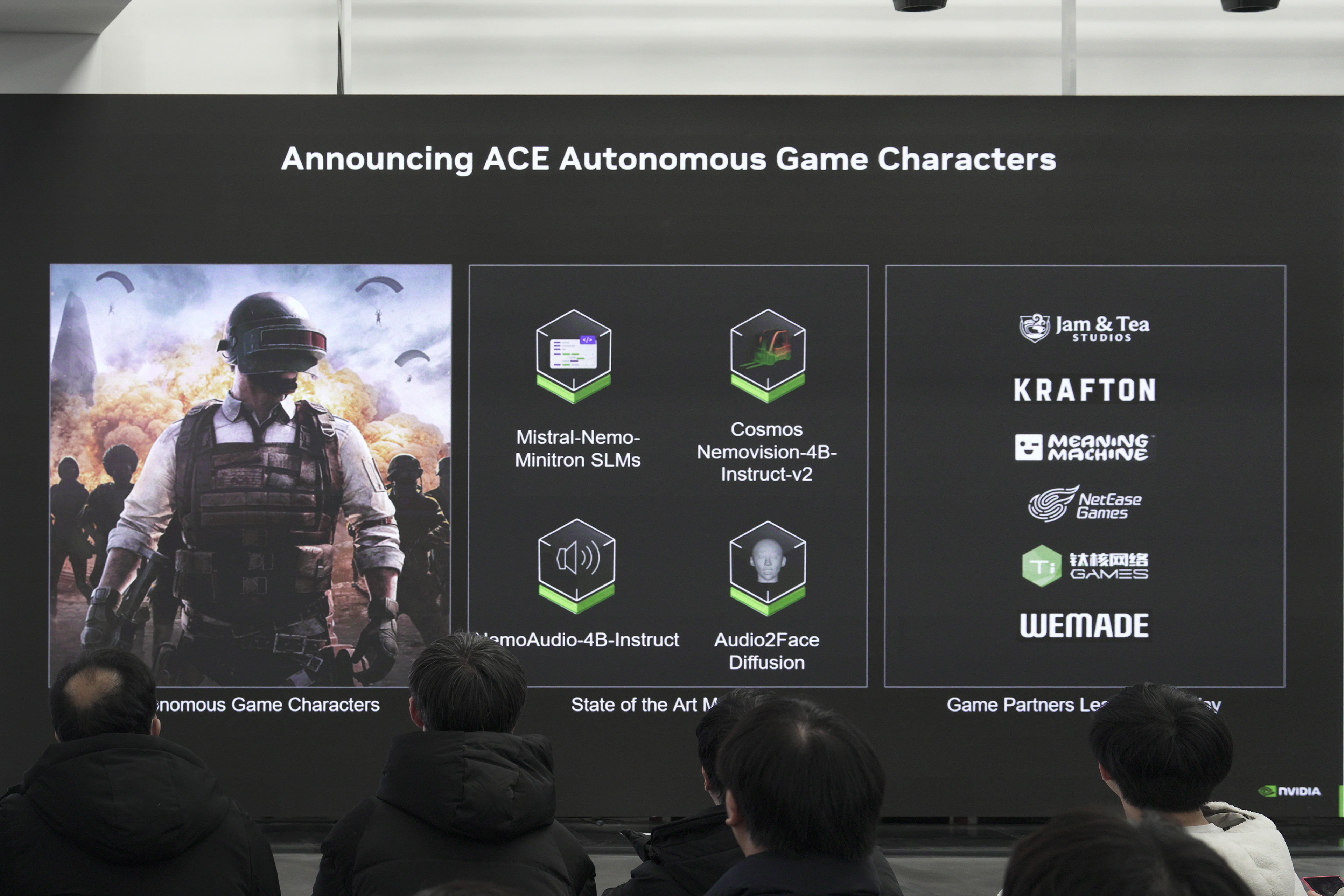 또한, 자사 생성형 AI 기반 가상 캐릭터 기술인 NVIDIA ACE를 크래프톤과 협업해, AI 캐릭터와 함께 스쿼드를 꾸려 플레이할 수 있는 PUBG ALLY에 대해서도 언급했습니다.