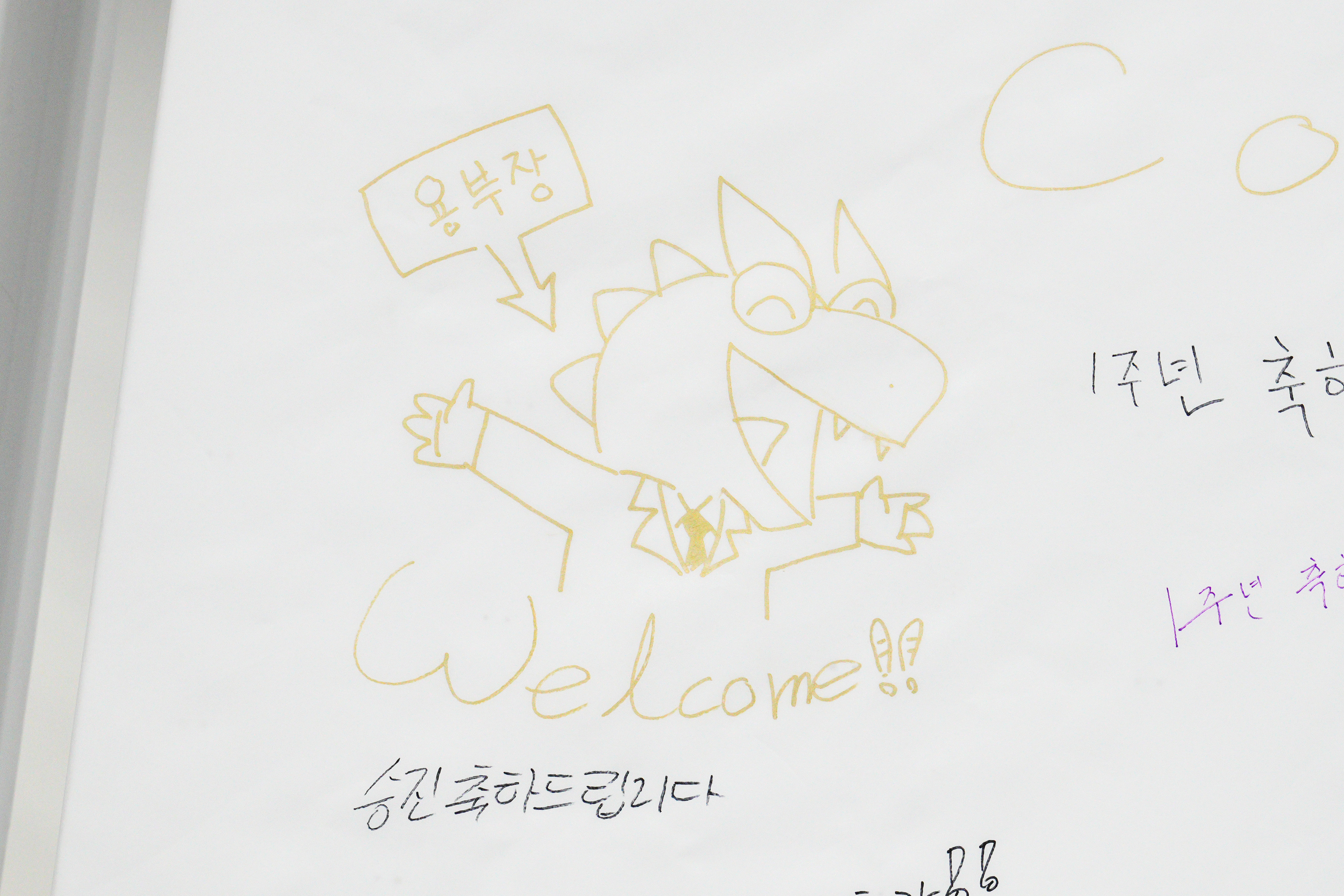 럭키 드로우 이후, 축하 문구를 남기고 있는 MSI 코리아 지사장님의 모습도 담아보았습니다.