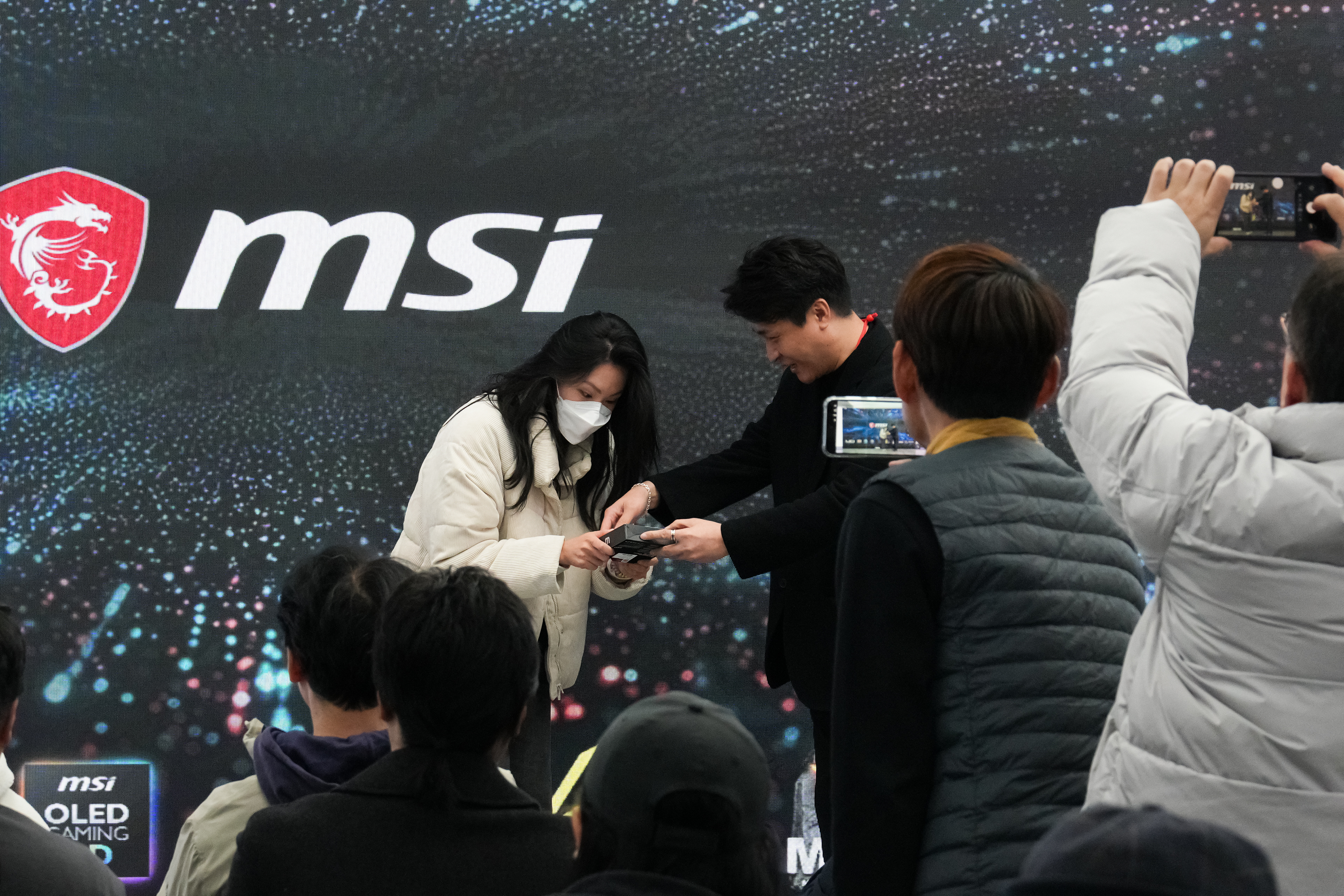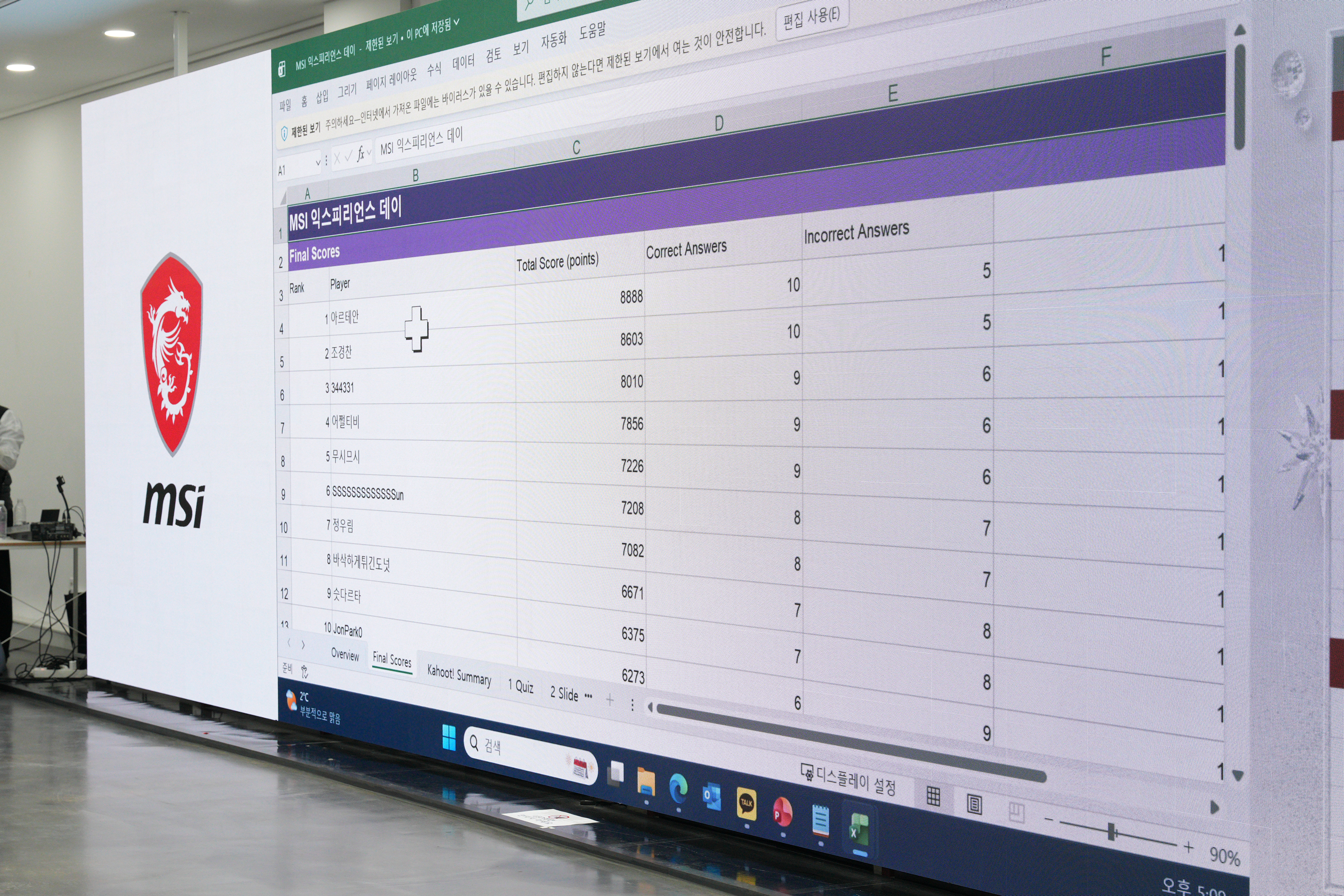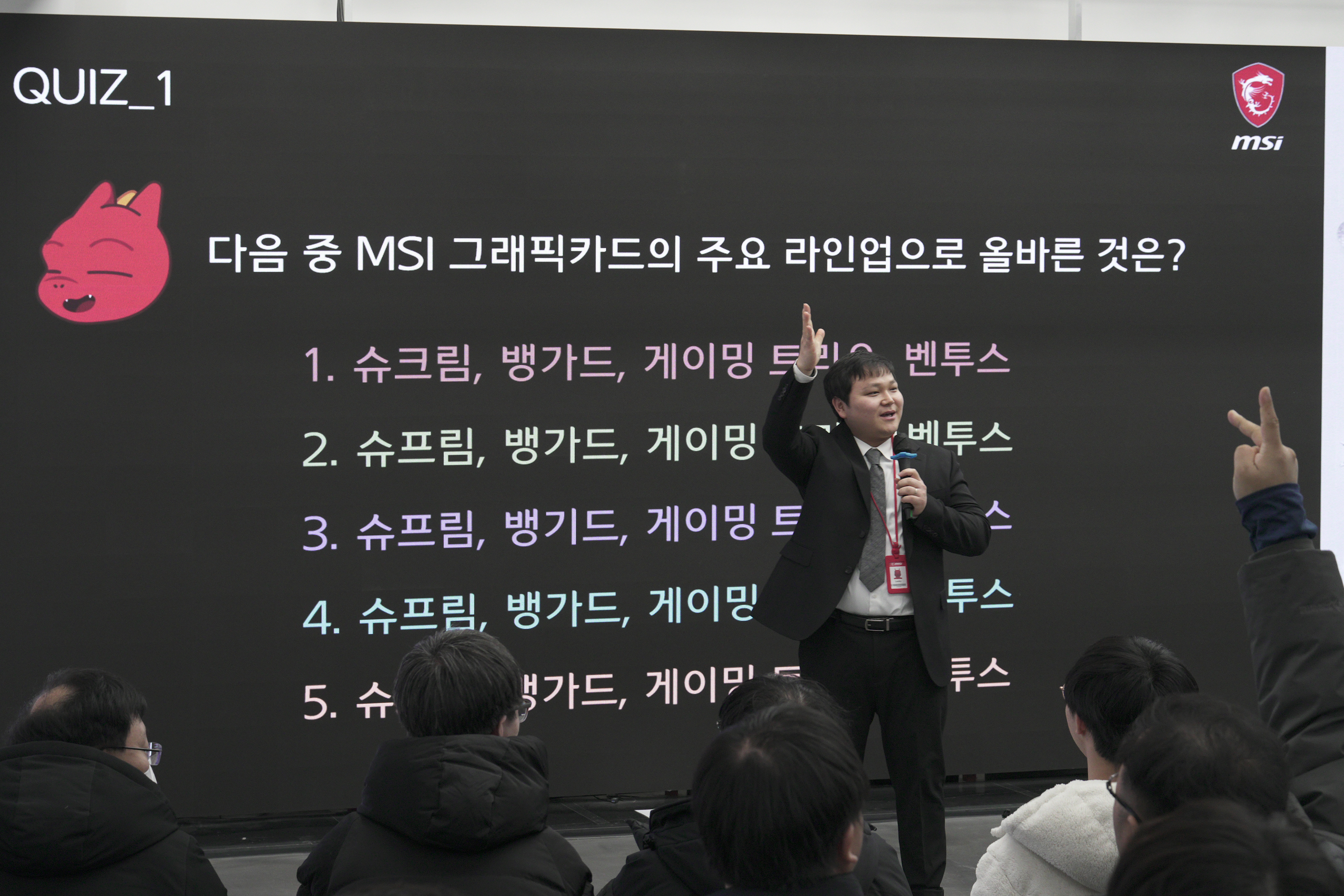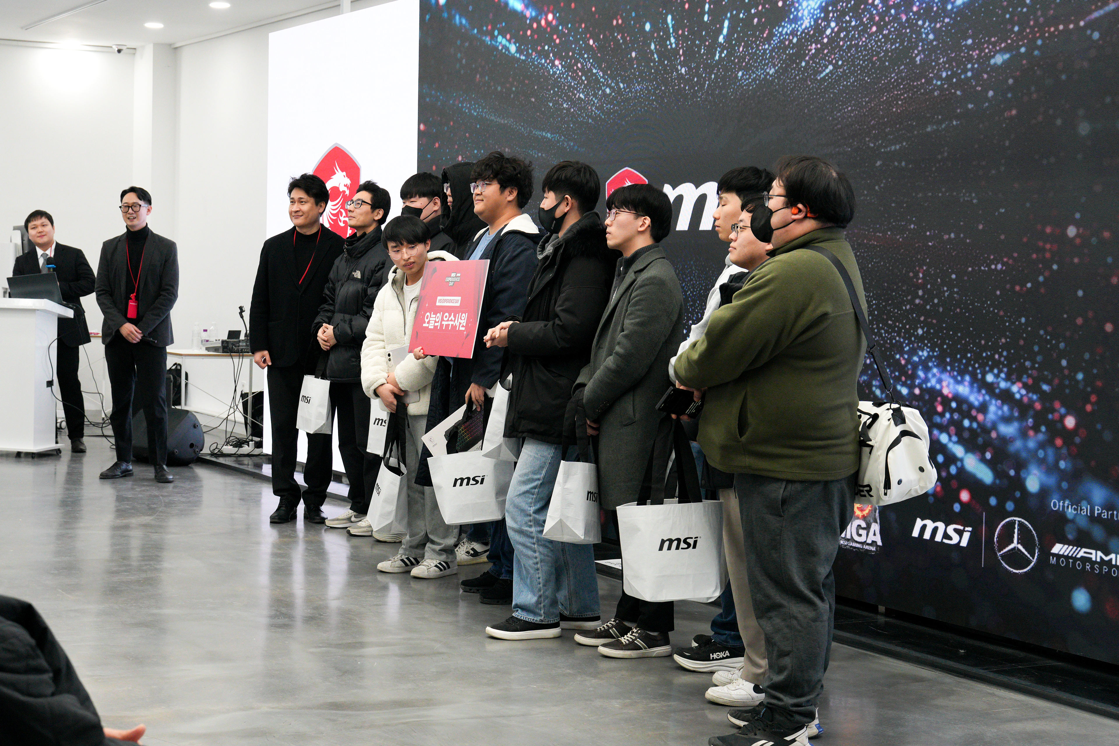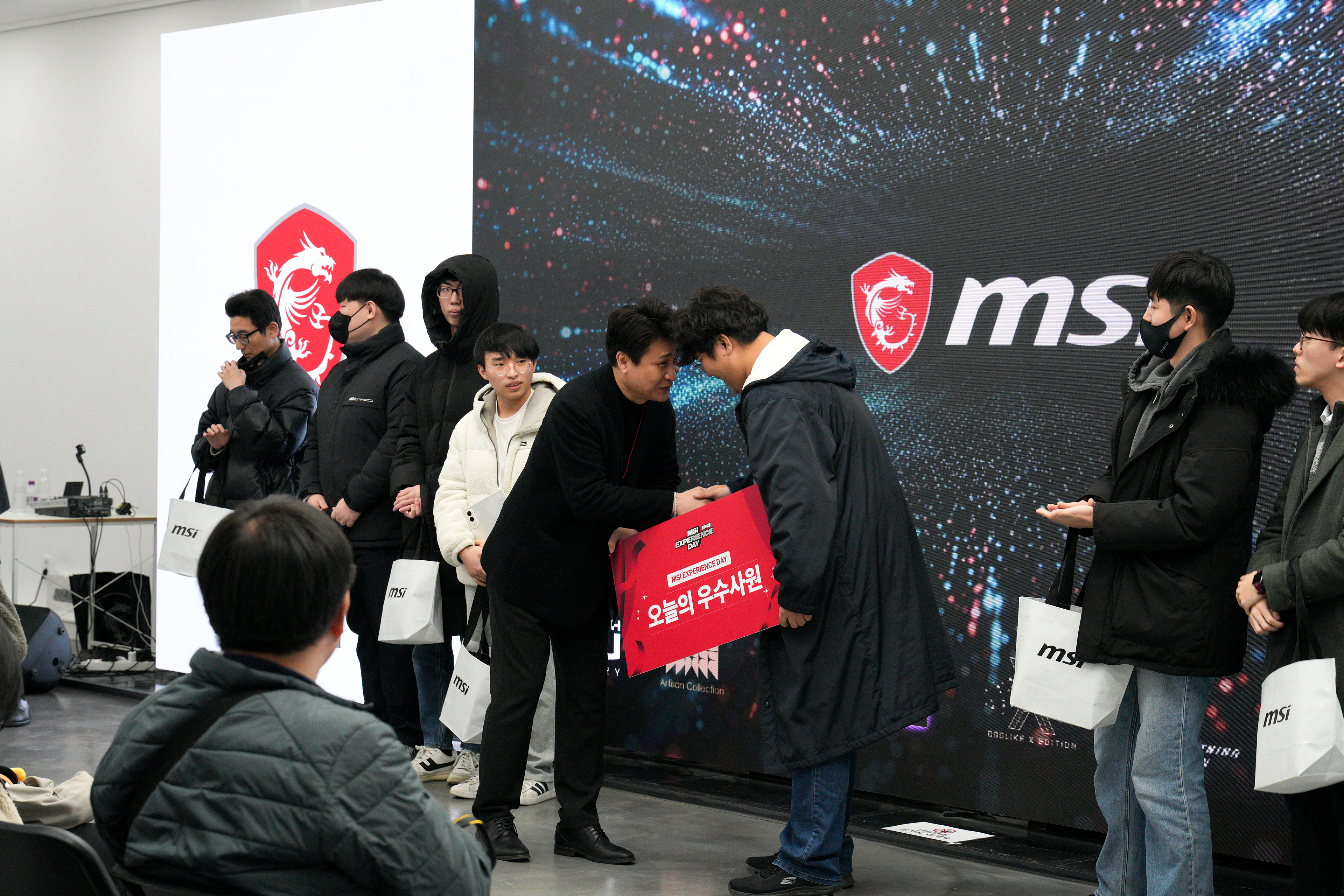 카훗 퀴즈 이벤트 수상자들은 MSI 코리아에서 제공한 굿즈를 받았습니다. 또한 1등 수상자는 MSI 코리아 지사장과 함께 기념 촬영을 진행했으며, 이어 1~10등 수상자와 MSI 코리아 지사장이 단체 사진을 촬영했습니다.