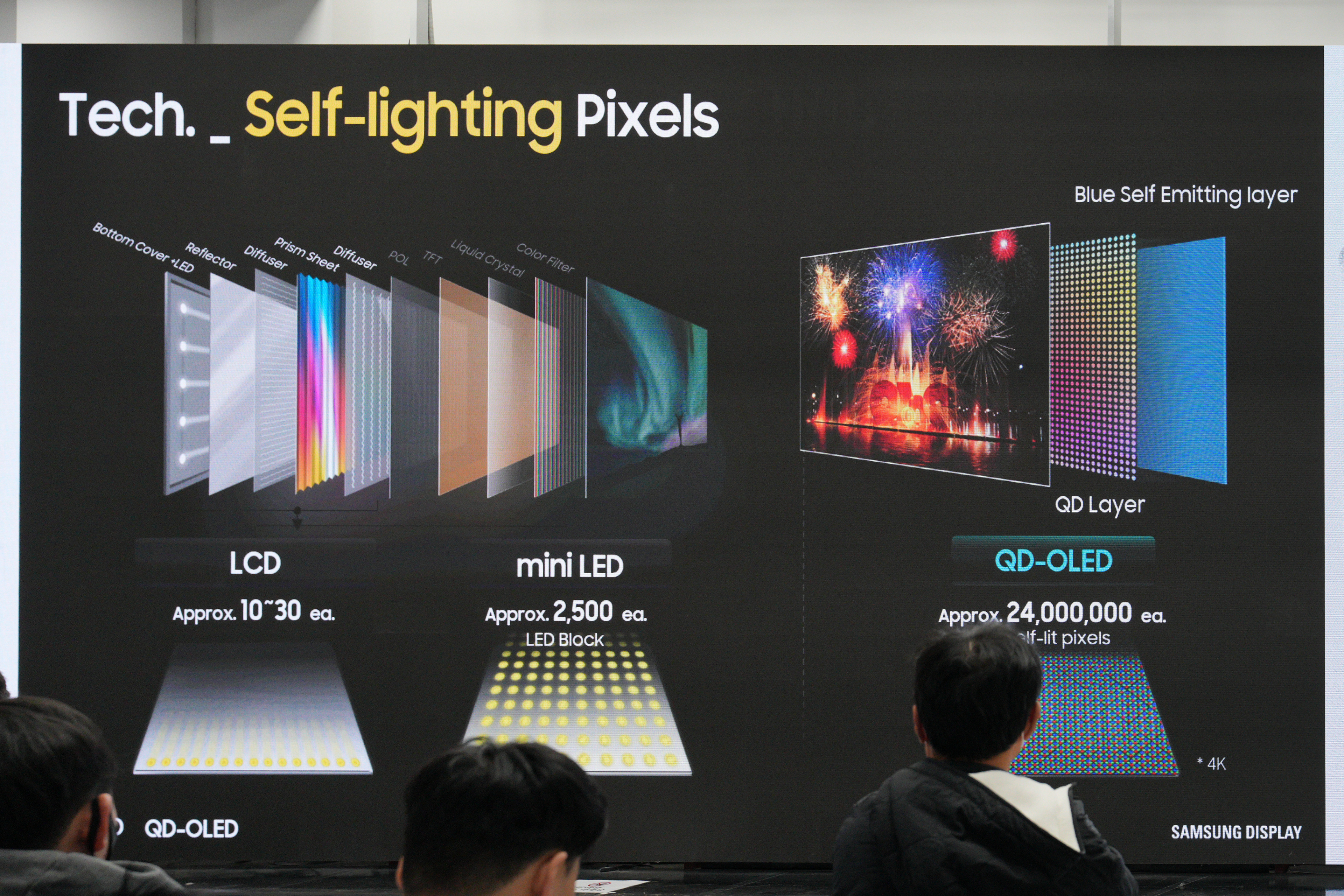 프레젠테이션에서는 기존의 디스플레이인 LCD와 OLED의 차이를 보여주었는데요.