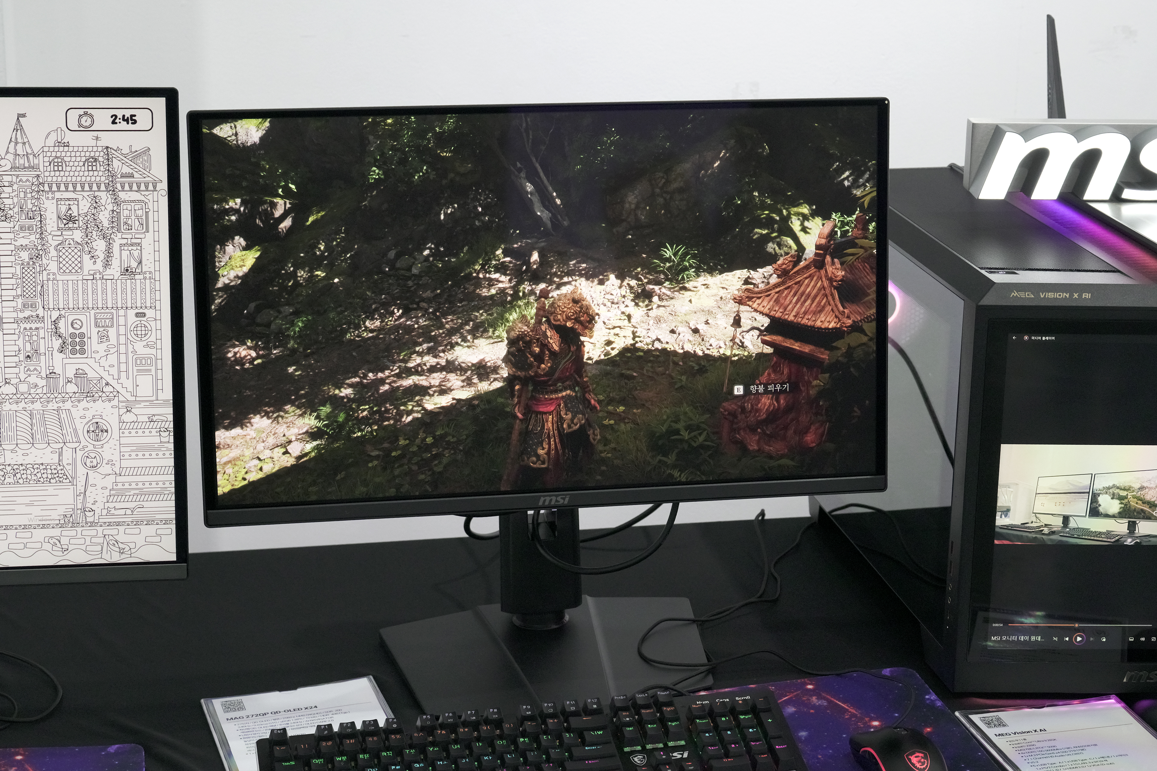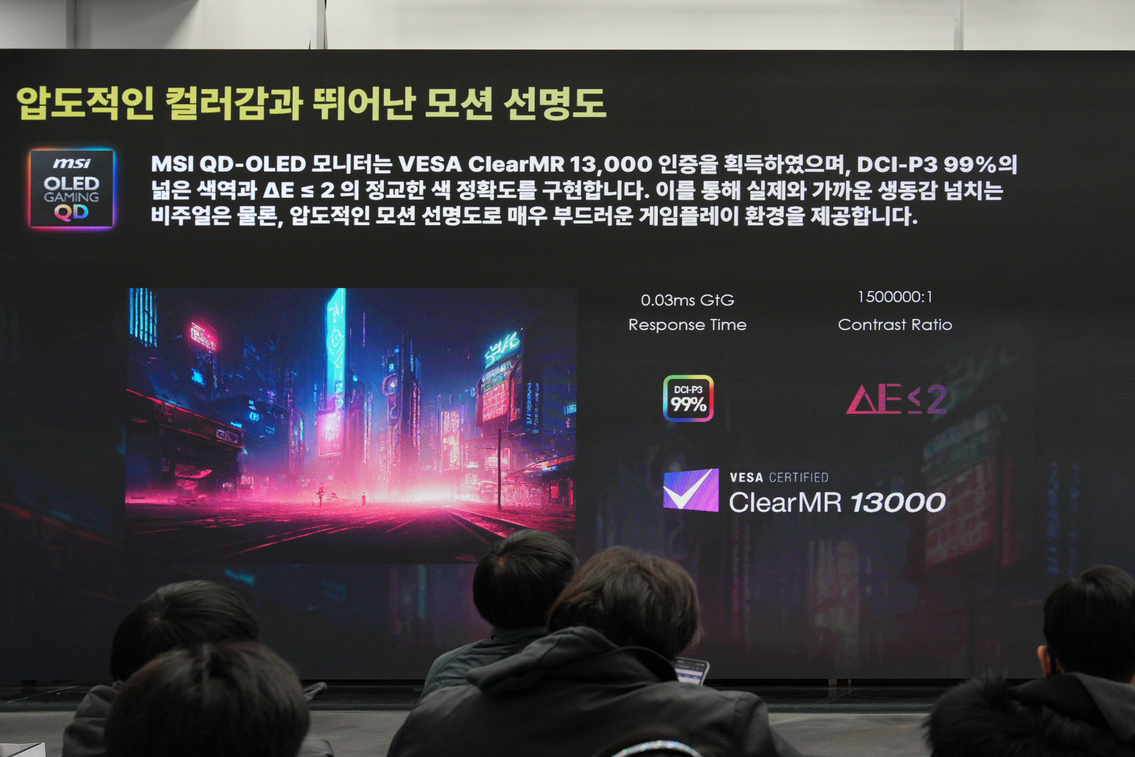 삼성 디스플레이 심희석 프로님의 프레젠테이션 이후에는 MSI 코리아에서 모니터 및 노트북 마케팅을 담당하는 임창민 대리가 무대에 올라, 신규 모니터 MSI MAG 272QP QD-OLED X24의 출시 소식과 자사 제품 일부를 소개했습니다.