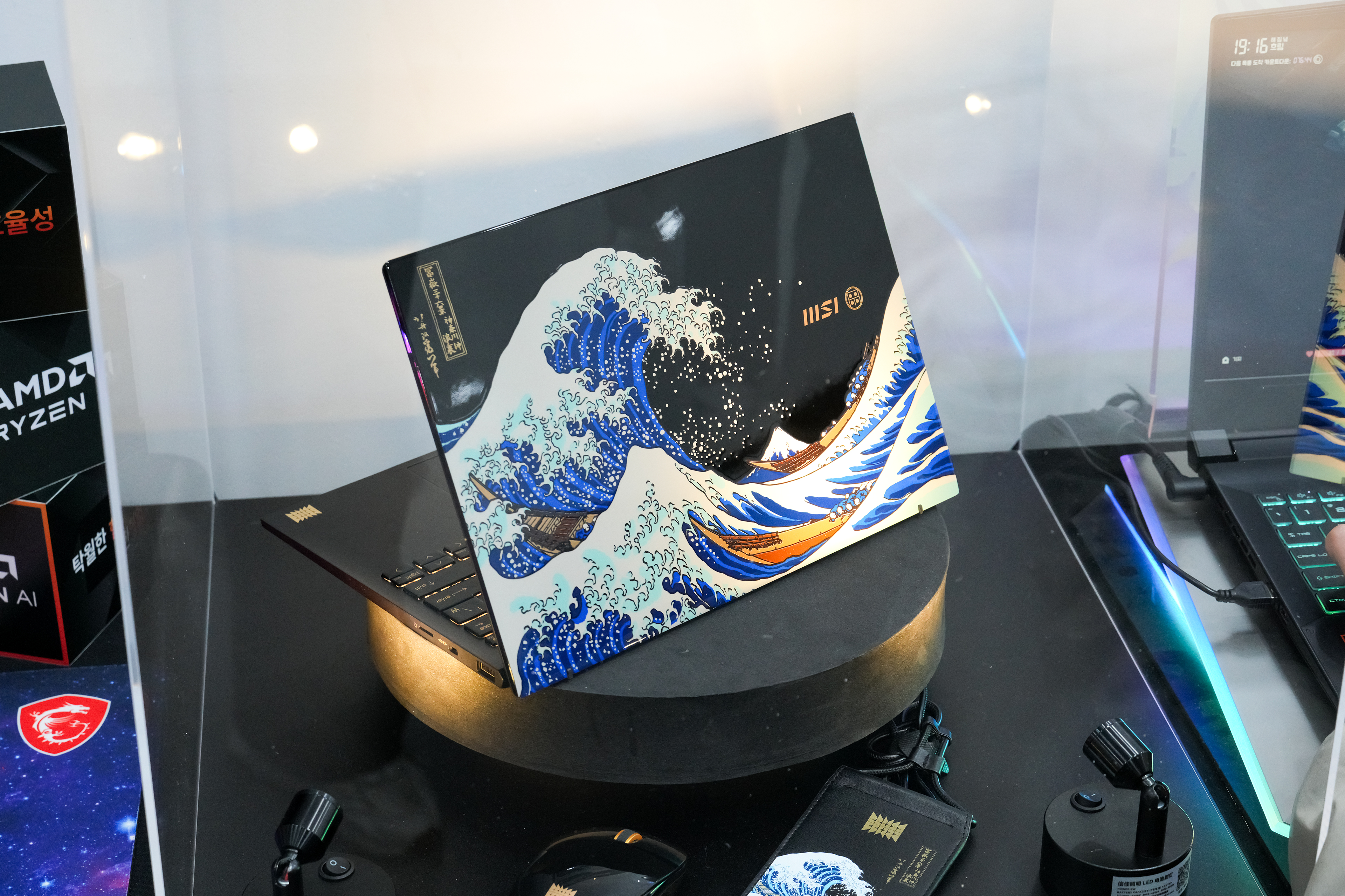 2025 컴퓨텍스에서 공개된 아티산 컬렉션 제품, MSI 프레스티지 13 AI+ 우키요에 에디션 A2VMG-U9 2.8K OLED입니다.