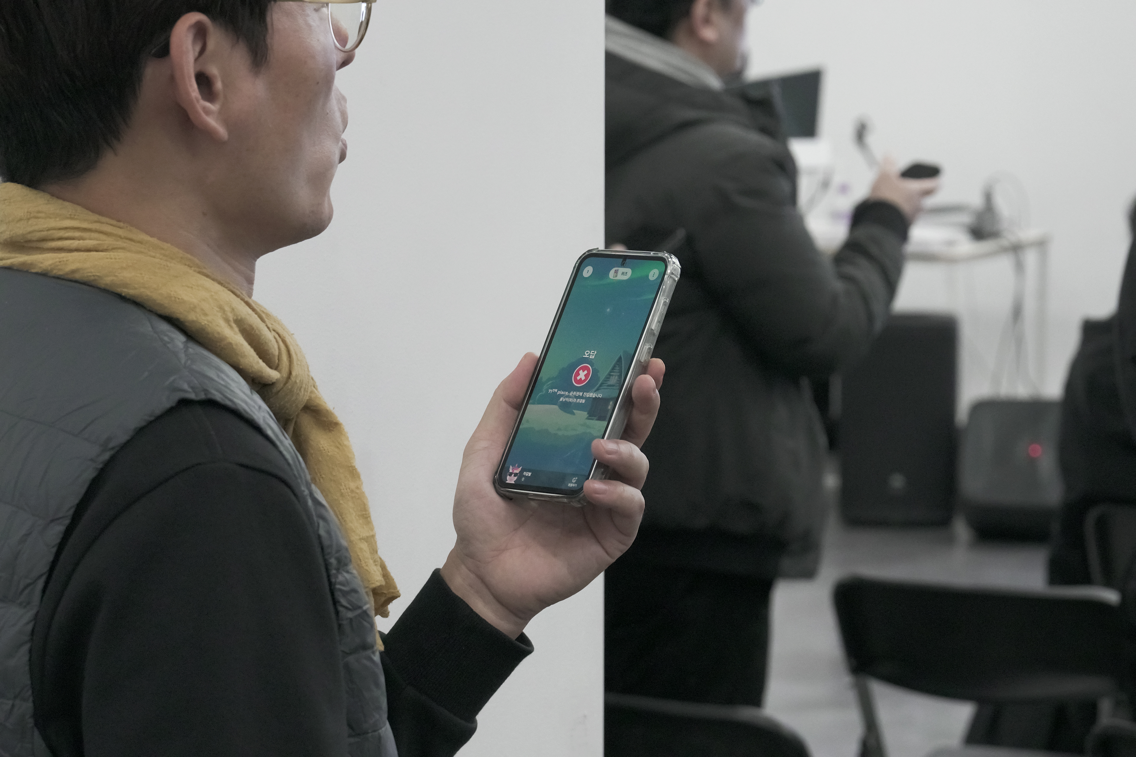 결재판 이벤트를 위해 참가자가 숨은 그림찾기를 진행하는 모습입니다.