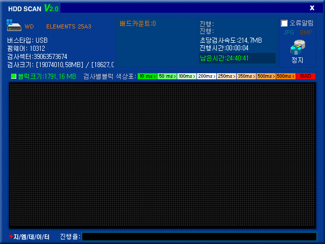 따라서 지금부터는 분해 전에 배드섹터 검사를 먼저 진행할 것이며, 이를 위해 지엠데이터의 HDD SCAN을 사용했습니다.